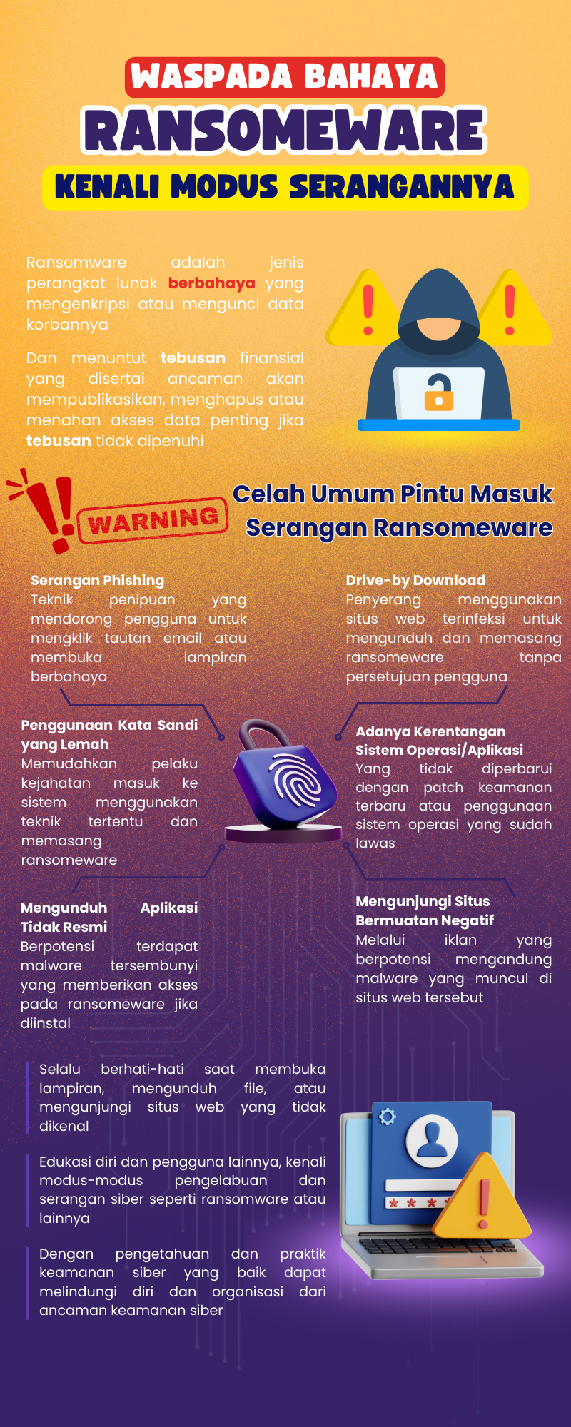 Menyajikan berbagai referensi mengenai jenis ancaman siber, metode serangan, serta cara pencegahannya.